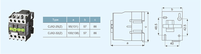 CJX2-口口series contactor is suitable for using in the circuit up to the rated voltage 600V AC 50Hz or 60Hz, rated current 170A, for making and breaking and frequent starting, controlling the AC motor which is combined with the auxiliary contact group, air delay, machine interlock and etc. It is combined into the delay contactor, reversing contactor, switchover capacitor contactor, star-delta starter, with the thermal JR28 relay. It is combined into the D.O.L Motor Starters.